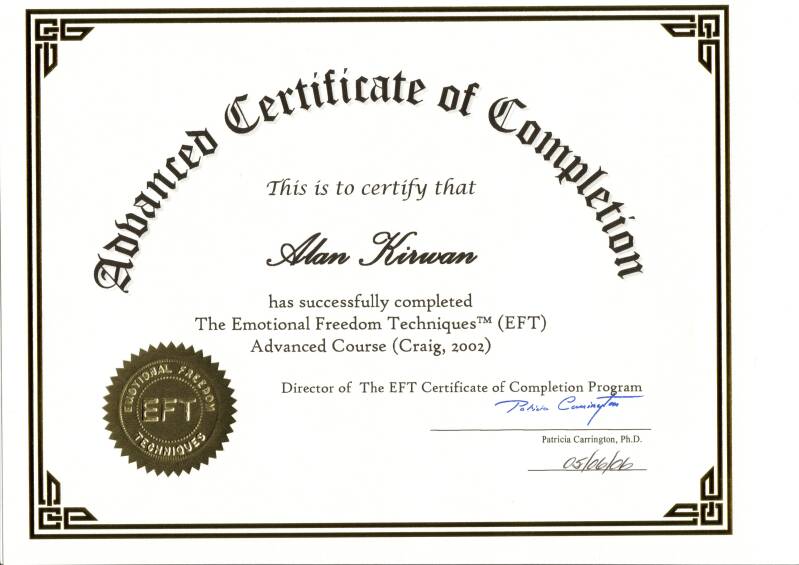 - EFT (Emotional Freedom Technique): Advanced Certificate of Completion (2006)